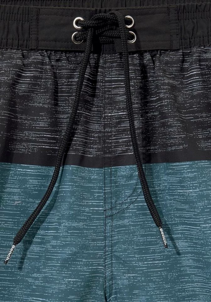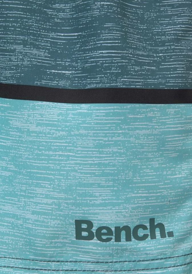 Ganz schön lässig! Die Badeshorts von Bench garantieren dir auch am Strand einen coolen Auftritt. Ihr Blockstreifendesign erhält durch die melierte Optik eine zusätzlich entspannte Note und auch die legere Passform und die zwei seitlichen Eingrifftaschen unterstreichen den relaxten Look. Auf jede Menge Tragekomfort kannst du dich dank des Elastikbundes mit Außenkordel und des Innenslips mit kleiner Innentasche verlassen. Ein kleiner Logoprint am Bein ergänzt das Gesamtbild der Shorts perfekt. Fast zu schade, um sie nur im Wasser zu tragen: die Badeshorts von Bench. Obermaterial aus 100% Polyester, Innenslip aus 100% Polyester.