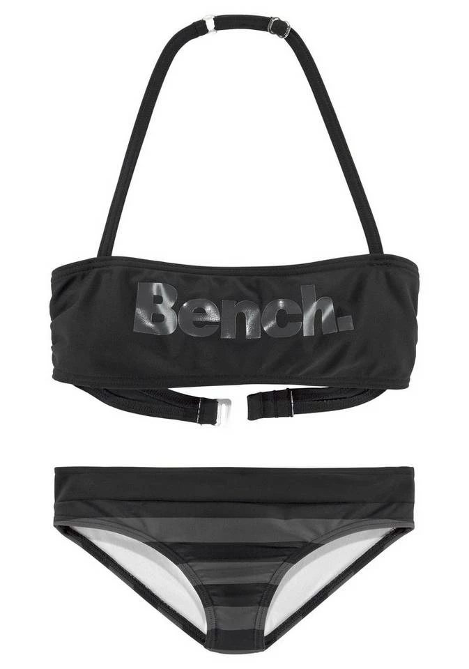 Der superlässige Bandeau-Bikini von Bench steht auf der Wunschliste aller sportlichen Badenixen. Das gerade geschnittene Top mit großem Logodruck sowie regulierbarem Nackenträger lässt sich auf der Rückseite schließen und sorgt mit den eingearbeiteten Seitenstäbchen für einen verlässlichen Sitz. Der Bikini-Slip des Zweiteilers zeigt sich im lässigen Streifen-Design und liefert besten Tragekomfort, dank formbeständigen Materials und elastischer Qualität. Der superlässige Bandeau-Bikini von Bench ist der Renner, auch außerhalb der Badesaison! Obermaterial: 80% Polyamid, 20% Elasthan (Xtra Life LYCRA®). Futter: 100% Polyester.