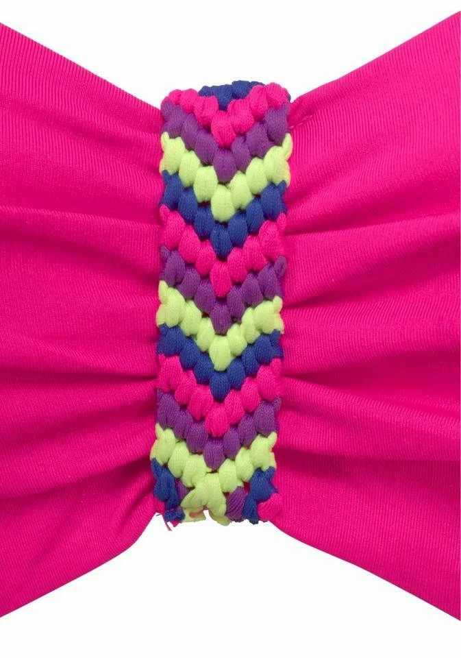 Mit seinen trendigen, geflochtenen Ethnodetails ist der Bügel-Bandeau-Bikini von Bench ein Fashion-Must-have. Das Top zieren zwischen den Cups modische Flechtdetails, die an der Hose mit Umschlagbund wieder aufgegriffen werden. Die Träger lassen sich im Nacken binden und sind abnehmbar. So wird das Oberteil im Handumdrehen zu einem Bandeautop. Wattierung und seitliche Stäbchen garantieren einen guten Sitz des Bikinitops und das elastische Material sorgt für Bewegungsfreiheit und Tragekomfort. Für den stylischen Auftritt auf der Sonnenliege ist der Bügel-Bandeau-Bikini von Bench wie geschaffen. Obermaterial: 84% Polyamid, 16% Elasthan. Futter: 100% Polyamid. Wattierung: 100% Polyester.