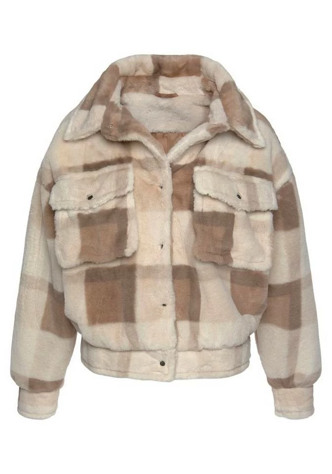 Flauschig-warmer Trendsetter, der in deinem Kleiderschrank nicht fehlen sollte: Die trendige Plüschjacke von Bench besteht aus dickem, kuschelig weichem Teddyplüsch und hält dich an kalten Tagen sehr warm. Der robuste Look der Jacke wird von dem großen Kragen, den auffälligen Pattentaschen aus der Brust und der durchgehenden Druckknopfleiste betont. Die modisch kurze Form mit dem eng anliegenden Bund sorgt in Kombination mit einer engen Jeans dafür, dass du in der Plüschjacke von Bench trotzdem schlank aussiehst.