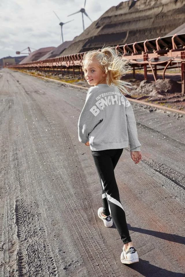 Das Fledermausshirt von Bench. ist eine unkomplizierte Antwort auf die drängende Frage "Was ziehe ich bloß an?". Durch den Logodruck wirkt es individuell und trendy. Die langen Fledermausärmel enden in einem Bündchen. Sie sind — vom Ärmelansatz bis zum Bund — keilförmig geschnitten und daher sehr weit und bequem. Das Shirt hat einen Rundhalsausschnitt und ist taillenbedeckend sowie weit geschnitten, sodass sich Teenies frei bewegen können.