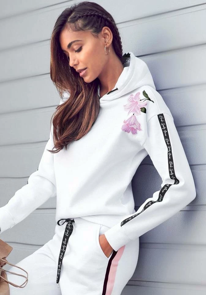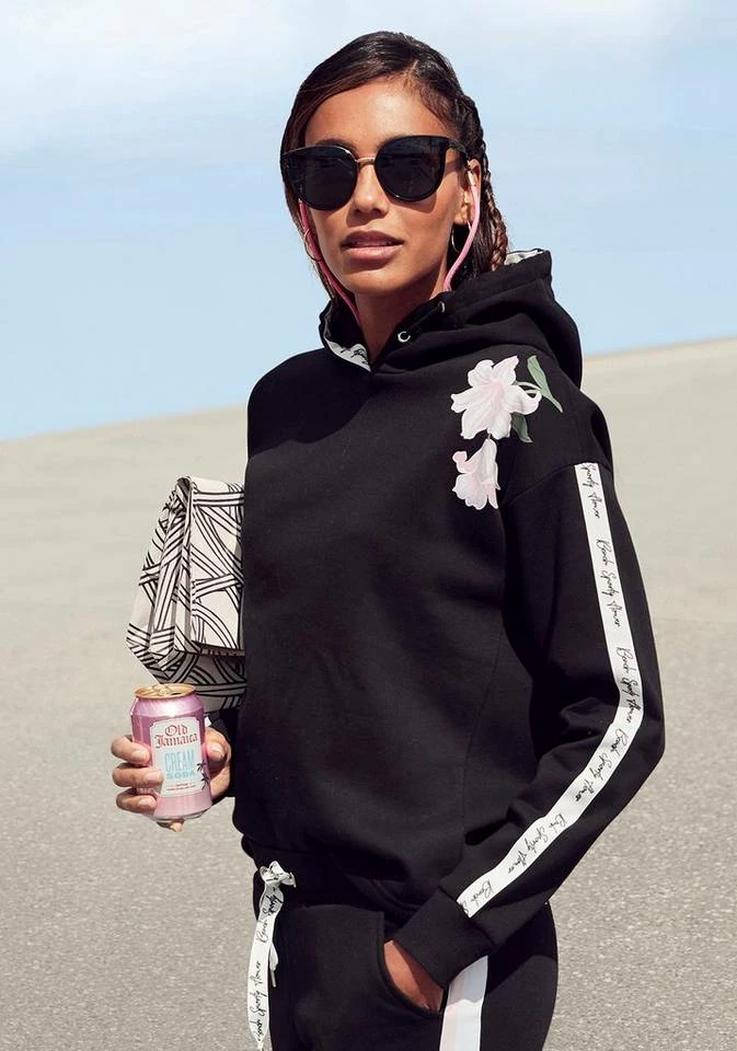 - Bequemer Hoodie mit Blumen-Print auf der Schulter