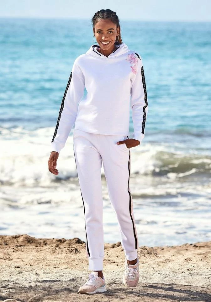Ein lässiger Hoodie mit dem gewissen Etwas! Der Kapuzenpullover von Bench ist ein sportliches Oberteil, das sich in der Freizeit als lässiger Begleiter entpuppt. Kleine Details lenken den Blick gekonnt auf das tolle Design. Sei es der Blumen-Print auf der Schulter oder die bedruckten Tapes auf den Ärmeln und in der Kapuze – so wird das Kapuzensweatshirt zum Styleobjekt. Überschnittene Schultern geben ihm eine Extraportion Lässigkeit, die durch das weiche Baumwollmaterial zusätzlichen Tragekomfort gewinnt. Abgerundet wird der Look durch praktische Rippbündchen am Ärmelabschluss. Jogginghose an, Haare hochbinden und schon bist du bereit, dein freizeittaugliches Outfit rund um den Bench-Kapuzenpullover deiner Couch zu präsentieren.