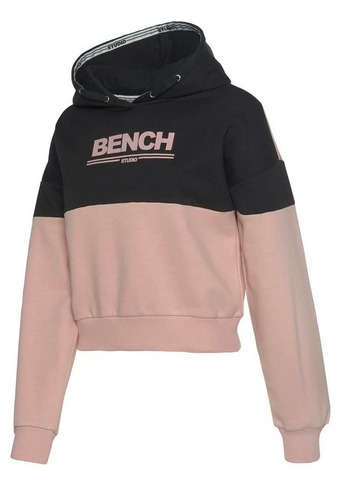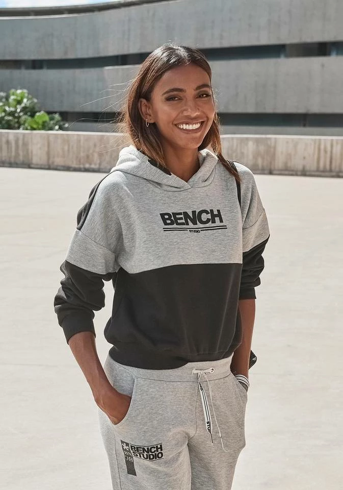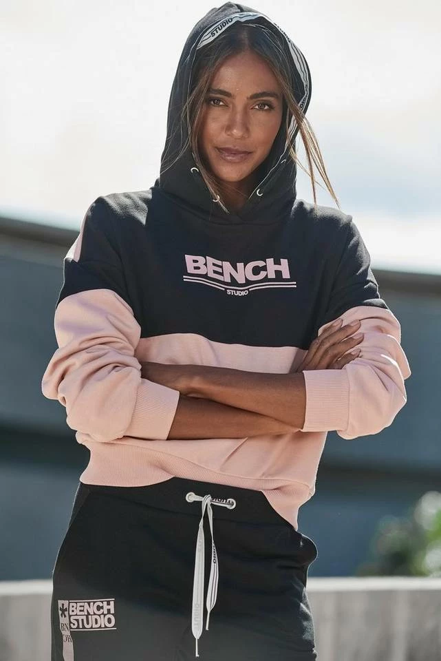 Mit dem farbgeblockten Hoodie von Bench bringst du den perfekten Mix aus Athletik und Lockerheit in dein Outfit. Das mit einem Logodruck auf der Brust versehene Sweatshirt mit Kapuze, Kordelzug und gerippten Bündchen bietet dir nicht nur einen angesagten, sportlichen Look, für den auch Details wie der Logoschriftzug in der Kapuze sorgen. Durch das weiche Jerseymaterial aus Baumwolle und Polyester und den kurzen Oversize-Schnitt ist dieser Style auch noch richtig angenehm zu tragen – vor allem in Kombination mit einer der dazugehörigen Sweat- oder Radlerhosen. Hosen und Hoodie von Bench folglich am besten gleich zusammen bestellen!