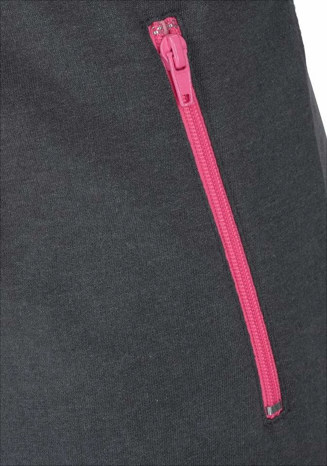 - Kontrastfarbene Kapuze, Reißverschluss und Eingrifftasche