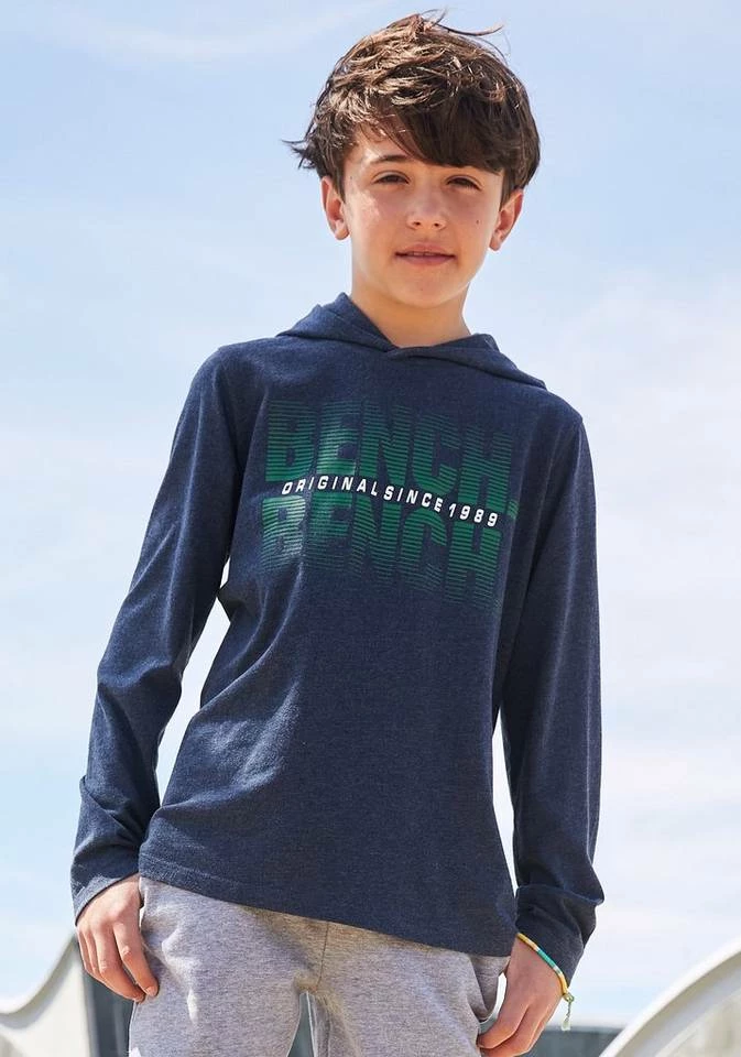 Das Kapuzenshirt von Bench. ist eine unkomplizierte Antwort auf die drängende Frage "Was ziehe ich bloß an?". Durch den Aufdruck wirkt es stylisch und cool.