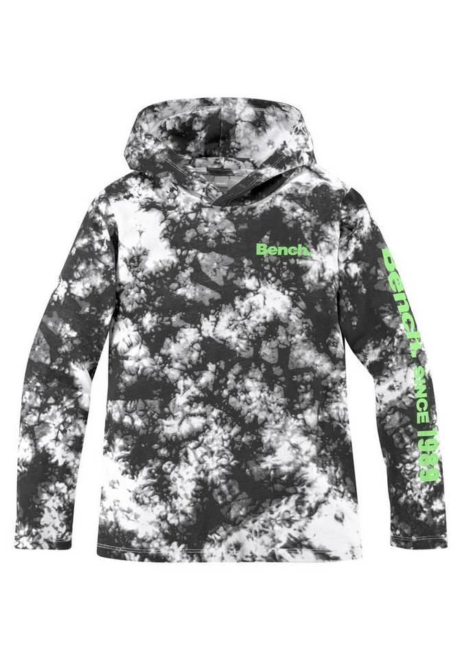 Das Kapuzenshirt »in tollem Batikmuster« von Bench. ist eine unkomplizierte Antwort auf die drängende Frage "Was ziehe ich bloß an?". Mit dem Aufdruck sieht es peppig und dynamisch aus. Das Shirt hat einen Rundhalsausschnitt und ist basic geschnitten, sodass die Bewegungsfreiheit nicht leidet.
