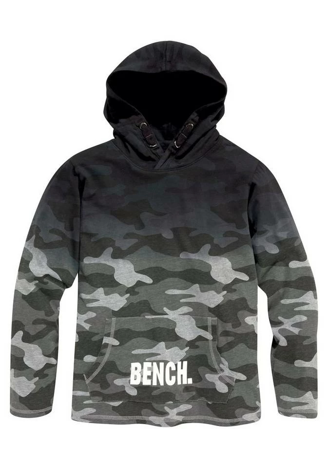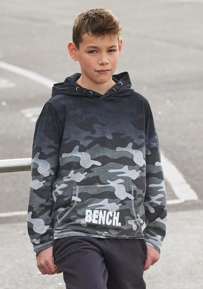 Probieren geht über kopieren: Mit diesem Kapuzenshirt »tarnfarben« von Bench. erfinden Teens ihren eigenen Style. Durch den Aufdruck wirkt es trendig und ausgefallen. Das Shirt hat einen Rundhalsausschnitt mit Rippbündchen und ist basic geschnitten, sodass sich Teenies frei bewegen können.