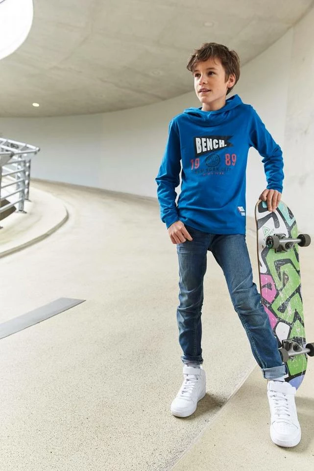 Das Langarmshirt von Bench. ist ein stylisches Essential, um den persönlichen Stil zu finden. Es wirkt mit dem Aufdruck peppig und dynamisch. Eine Kapuze ist bei diesem Shirt angesetzt. Sie ist gefüttert und dadurch warm und kuschelig. Es ist basic geschnitten, sodass die Bewegungsfreiheit nicht leidet.
