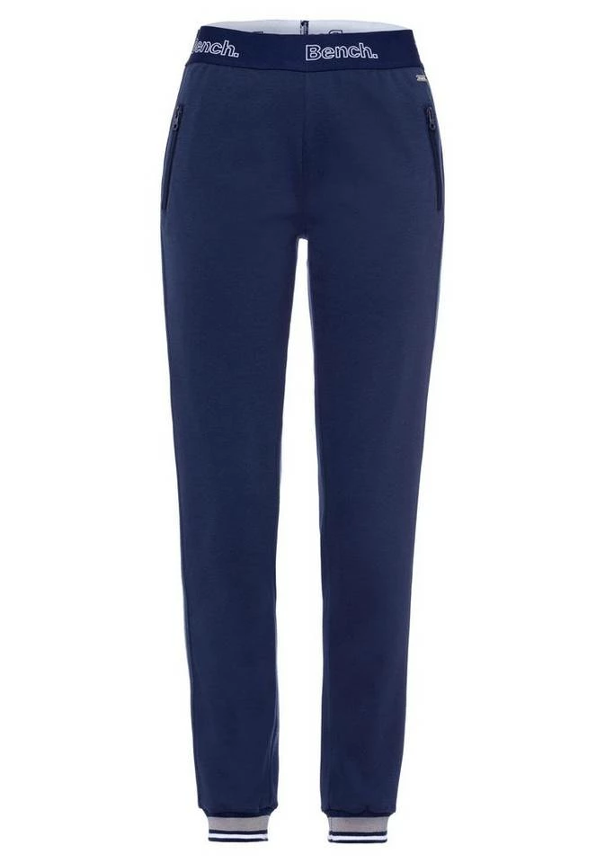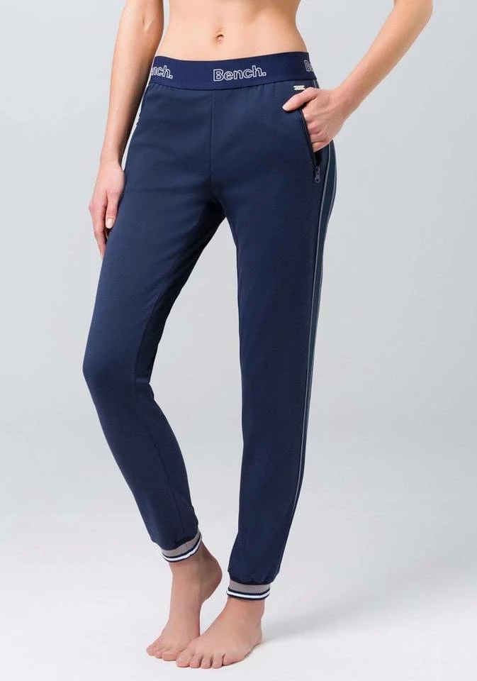 Schwing die Hüften: Ob auf der Tanzfläche oder deinem Sofa ist mit den Relaxpants von Bench ganz dir überlassen. Ein breites Labelgummi dient als Bund und macht jede Bewegung mit. Die Seitenstreifen strecken optisch das Bein und verleihen der gemütlichen Hose eine coole Note. Die langen, figurumschmeichelnden Hosenbeine werden am Saumabschluss von farbigen Strickbündchen leicht gekräuselt. In zwei Reißverschlusstaschen kannst du Hände oder Kleinigkeiten verstauen, während das superweiche Material sich kuschelig anschmiegt. Die Relaxpants von Bench sind zum Wohlfühlen gemacht.