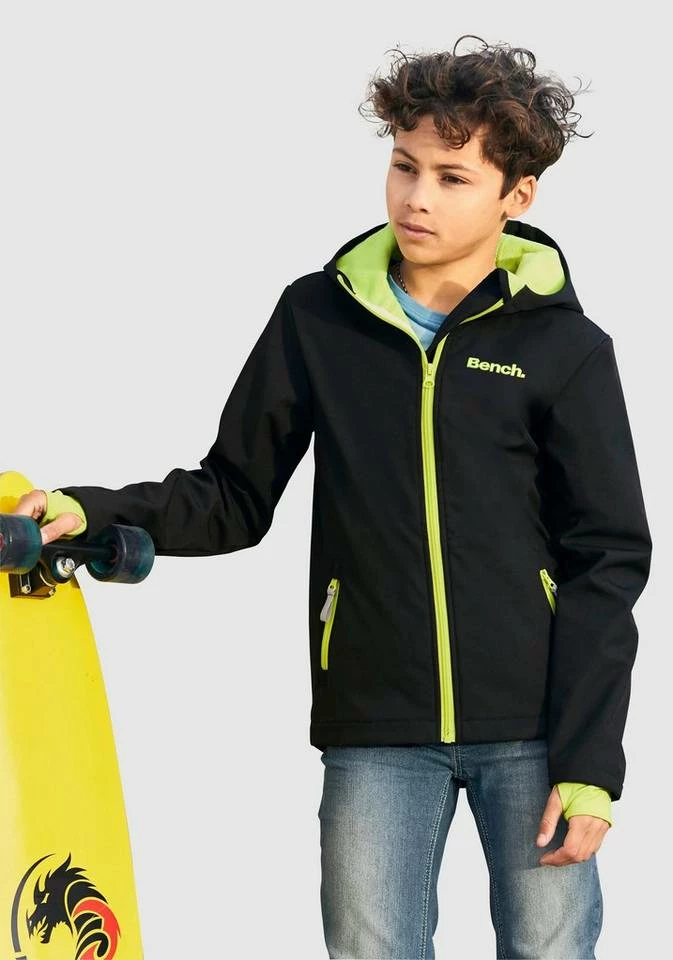 Wetterbeständig und cool ist die funktionale Softshelljacke von Bench für Jungen mit Kapuze. Kontrastierend erscheinen das kleine Logobadge vorn, der robuste Reißverschluss, die Zippertaschen, die elastischen Ärmelbündchen mit Daumenloch und die Innenseite mit weichem Fleecefutter. Hinzu kommen reflektierende Details für eine bessere Sichtbarkeit im Dunkeln. Die bewegungsfreundliche Jacke mit hinten leicht verlängertem Schnitt passt bequem über einen warmen Pulli. Unverzichtbar für Outdoorfans – die komfortable Softshelljacke von Bench für Jungen!