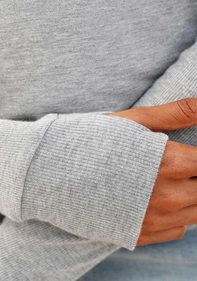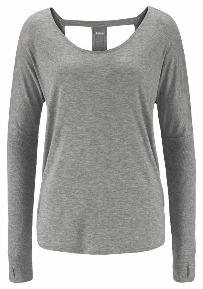 Das Langarmshirt von Bench überrascht mit seiner außergewöhnlichen Rückseite. Vorn zeigt sich das Shirt puristisch mit überschnittenen Schultern und überlangen, gerippten schmalen Ärmeln mit Daumenlöchern. Hinten ist es ein absoluter Eye-Catcher: Die typische Wickeloptik wurde hier mit einem coolen T-Strap-Design kombiniert und ergibt einen Style der Extraklasse. Der kontrastfarbene Markenschriftzug ist dabei ein Highlight. Das superweiche Material ergänzt das coole Design, das einfach zu allem passt. Das Langarmshirt von Bench ist wirklich etwas Besonderes!