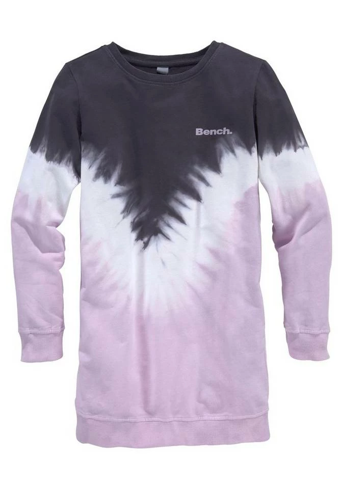 Wenn bei den Großen etwas angesagt ist, dann wird es auch bei den Kids bald zum Trend. Das zeigt das Sweatkleid mit Farbverlauf von Bench. Aufgrund der Batiktechnik entsteht ein einzigartiger Farbspiel, das jedes der Pulloverkleider zu einem Unikat macht. Auch die Bequemlichkeit kommt nicht zu kurz – dafür sind die lockere Passform und die angenehme Qualität verantwortlich. Abgerundet wird der Sweaterstil des Kleides durch die gerippten Bündchen an den Ärmeln und am Saum. Mit unifarbenen Tights und Sneakers ist das Kleid bestens kombiniert und macht sowohl in der Schule als auch in der Freizeit Eindruck. So stylisch wie gemütlich: das Sweatkleid mit Farbverlauf von Bench.
