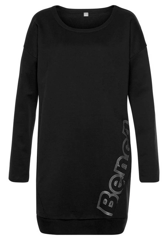 Für die entspannten Stunden auf der Couch: Das ultrabequeme Longshirt von Bench in angenehmer Sweatqualität überzeugt mit einem angesagten, asymmetrischen Logoprint. Das langärmelige Nachthemd ist mit einem weiten Rundhalsausschnitt und modisch überschnittenen Schultern versehen, nicht fehlen dürfen die typischen Rippbündchen am Saumabschluss. Mit Leggings ist dein Relaxoutfit rund um das Longshirt von Bench schnell komplett.