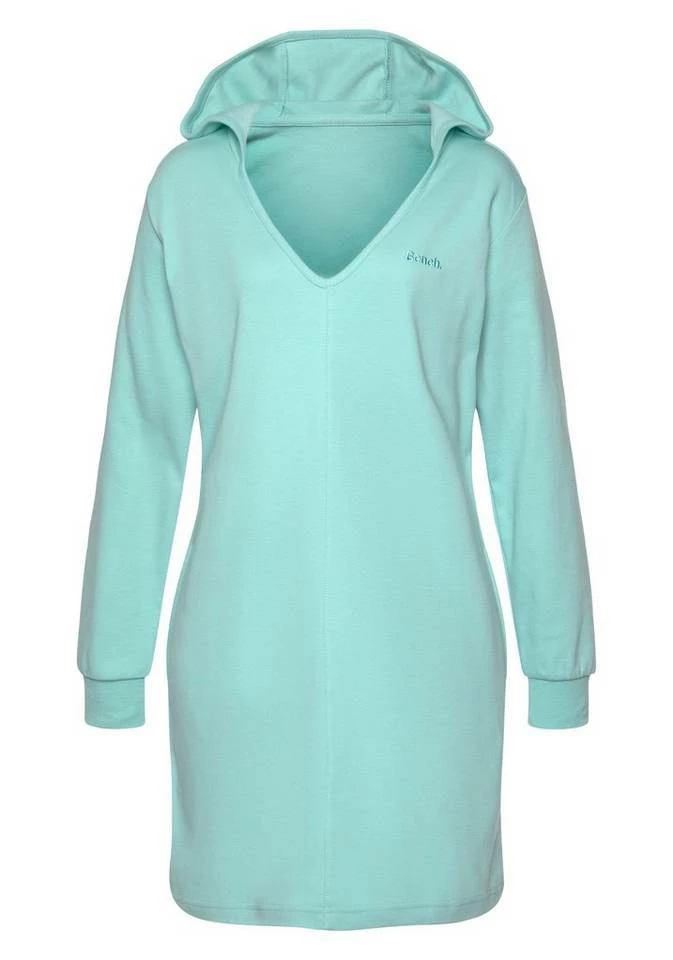 Kleider gibt es nur in schick? Da beweist das trendy Sweatkleid von Bench das Gegenteil! Es ist perfekt für einen lässigen Samstagnachmittag, macht nach Feierabend auf deiner Couch eine tolle Figur und begleitet dich auch sonst zu jeder Gelegenheit in der Freizeit. Die Kapuze ist ein cooles Extra und geht in einen sexy V-Ausschnitt über. Mit seinem weichen Material aus einer trageangenehmen Baumwollmischung schmiegt ich das Kleid wunderbar an deinen Körper an. Ganz gleich, ob du es mit freien Beinen oder mit Leggings trägst – dein Look spricht damit Bände. Eindeutig gibst du mit dem Hoodie Dress zu verstehen, dass du nun die gemütlichen Stunden des Alltags eingeläutet hast. Steck die Hände in die seitlichen Eingrifftaschen und mache es dir mit dem Sweatkleid von Bench bequem.
