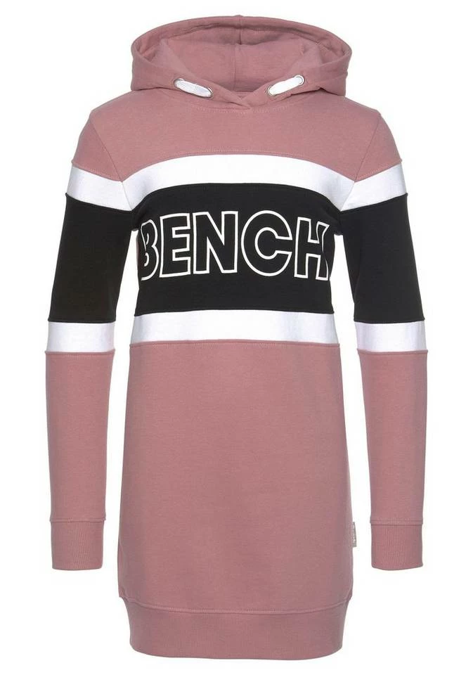 Ausgestattet mit großer Kapuze bietet dieses Sweatkleid von Bench für Mädchen einen lässigen Look. Nicht zu übersehen sind seine modischen Blockstreifen. Ein großer Logodruck vorn ergänzt das Design cool. Breite Rippbündchen an den Säumen und der kontrastive Tunnelzug in der Kapuze verleihen dem schmal geschnittenen Kleid bequemen Passkomfort. Für einen hohen Kuschelfaktor sorgt seine innen weich angeraute Sweatqualität. Jetzt brauchst du nur noch deine liebsten Sneakers dazu – schon kann es losgehen – im sportlichen Sweatkleid von Bench für Mädchen!