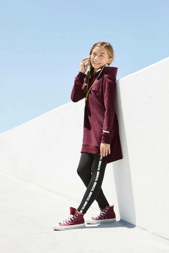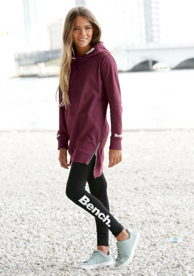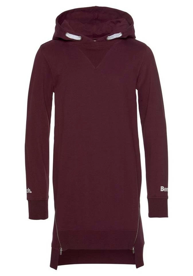 Charmant, sportlich, relaxt: das Kapuzensweatkleid von Bench! In stylischer Attitüde sorgt das Kleid bei kleinen und großen Mädchen für Begeisterung. Das coole Design des Longpullis setzt sich aus vorverlegten Seitennähten mit dekorativen Reißverschlüssen, kleinen Logoprints an den Ärmeln und gemütlichen, breiten Bündchen zusammen. Komfortabel und bequem? Kein Problem für den Hoodiedress mit der weichen Baumwollsweatqualität.