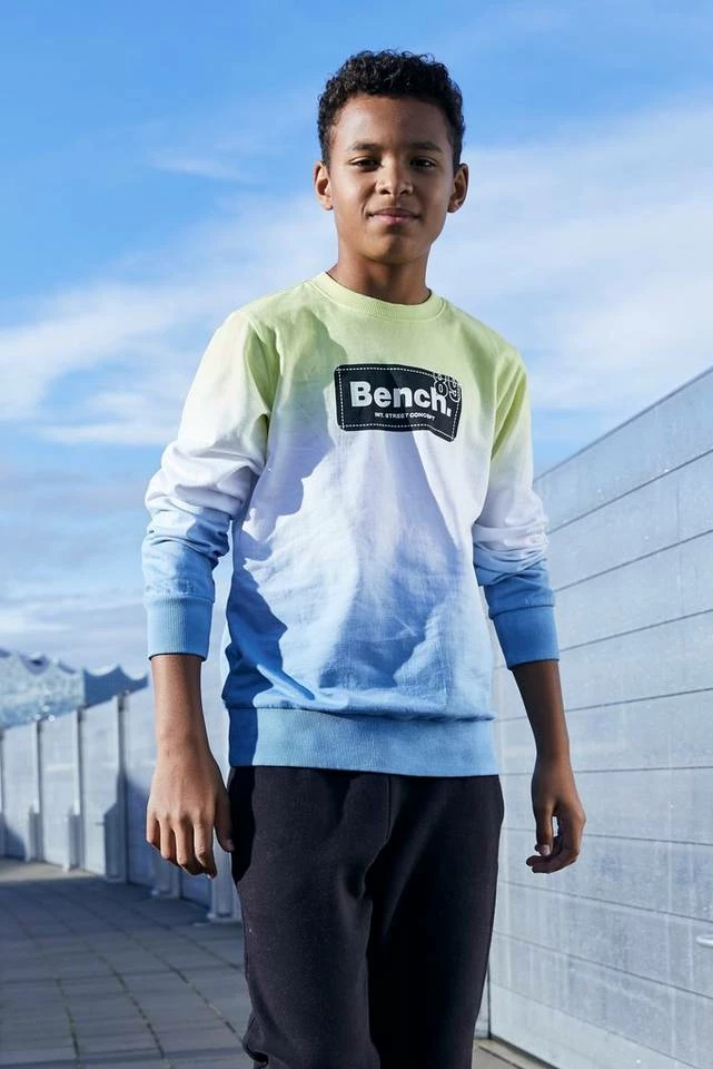 Da das Batikverfahren jedes Stück einzigartig macht, erhalten die Kids mit dem coolen Sweatshirt von Bench im Dip-Dye-Look ein echtes Einzelstück. Auf der Vorderseite prangt zudem ein großer Markenschriftdruck. Für einen tollen Tragekomfort ist der Pulli in angenehm leichter Sweatqualität gearbeitet, leger geschnitten und an den Säumen mit gerippten Bündchen versehen. Zu Jeans und Sneakers passt er am besten. Entspannte Looks für entspannte Jungs: mit dem Sweatshirt von Bench in Dip-Dye-Optik.