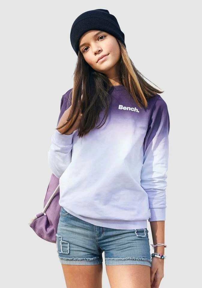 Macht richtig was her: Einen modischen Blickfang sichert sich deine Tochter mit dem urbanen Sweatshirt von Bench für Mädchen. Einzelstück-Charakter bekommt der langärmlige Pullover durch die ganz individuelle Farbverlaufoptik und den plakativen Labelprint auf dem Rücken. Weiche, gut anliegende Rippbündchen an den Ärmeln verhindern ein Verrutschen und verleihen dem Sweater sein typisch sportives Erscheinungsbild. Die dezente Labelschlaufe und der Markenprint auf Brusthöhe bereichern das Design zudem um einen stylischen, markentypischen Akzent. Dank der weichen Sweatware ist ein angenehmes Gefühl auf der Haut sicher. Im Ensemble mit einem Jeansrock, Sneakers und einem Rucksack entsteht eine gelungene Kombination. Überrasche dein Kind mit dem Sweatshirt von Bench für Mädchen im trendstarken Dip-Dye-Style mit einem besonders schönen Stück!