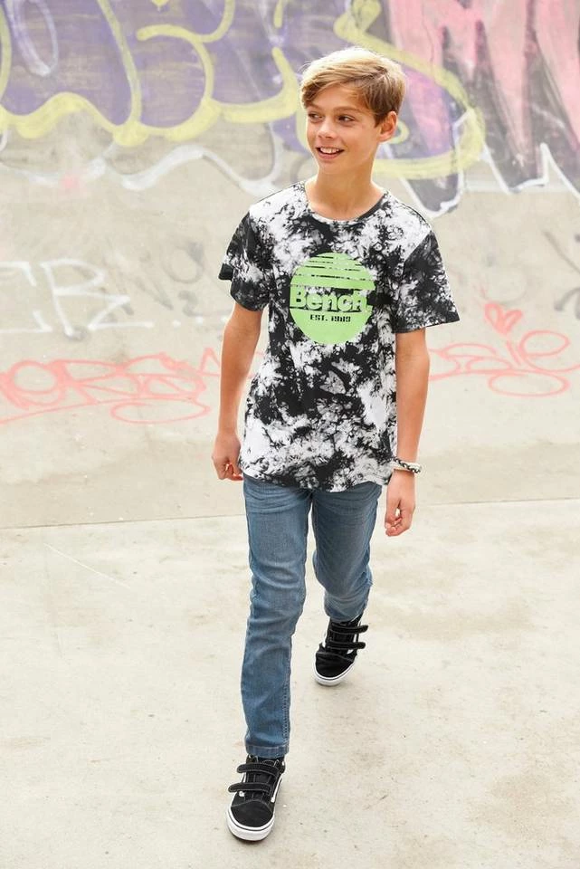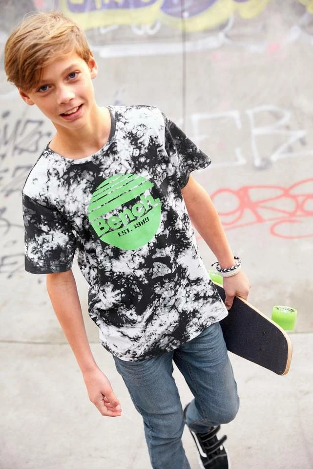Das T-Shirt von Bench. bildet die Grundlage für jedes stilsichere Outfit. Mit dem Aufdruck sieht es stylisch und cool aus. Das Shirt hat einen Rundhalsausschnitt mit Rippbündchen und ist basic geschnitten, sodass sich Teenies frei bewegen können.