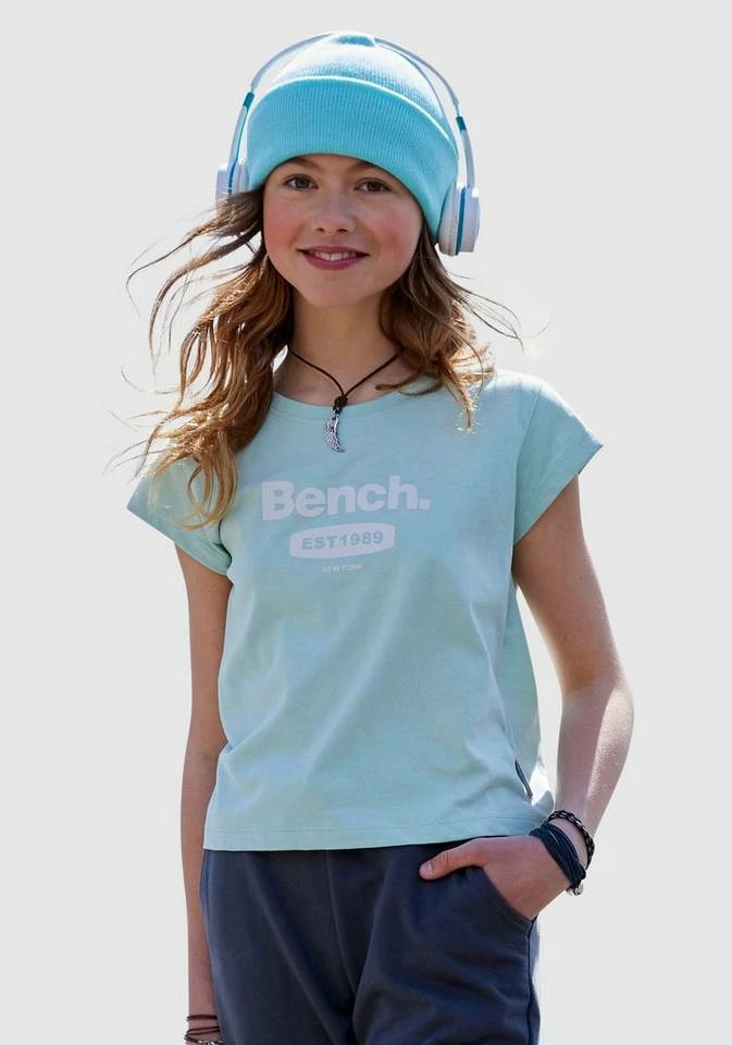 Das T-Shirt von Bench. ist ein stylisches Essential, um den persönlichen Stil zu finden. Durch den Logodruck wirkt es individuell und trendy. Die kurzen Ärmel enden in einer abgesteppten Kante. Das Shirt hat einen Rundhalsausschnitt und ist taillenbedeckend sowie gerade geschnitten, sodass sich Teenies frei bewegen können.