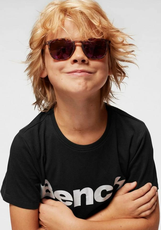 Für coole Jungs gibt es hier das passende Shirt: Das T-Shirt von Bench ist mit dem plakativen Logofrontprint ein oberlässiger Vertreter seiner Art. Ein fein gerippter Rundhalsausschnitt, kurze Ärmel und der gerade Schnitt des Logoshirts bringen die klassischen Eigenschaften eines Jungen-T-Shirts mit ein, dank weicher Baumwollqualität trägt es sich natürlich auch superbequem. Zu angesagten Joggpants, kernigen Jeans oder sommerlichen Cargoshorts ist das T-Shirt von Bench immer ein Stylegarant.