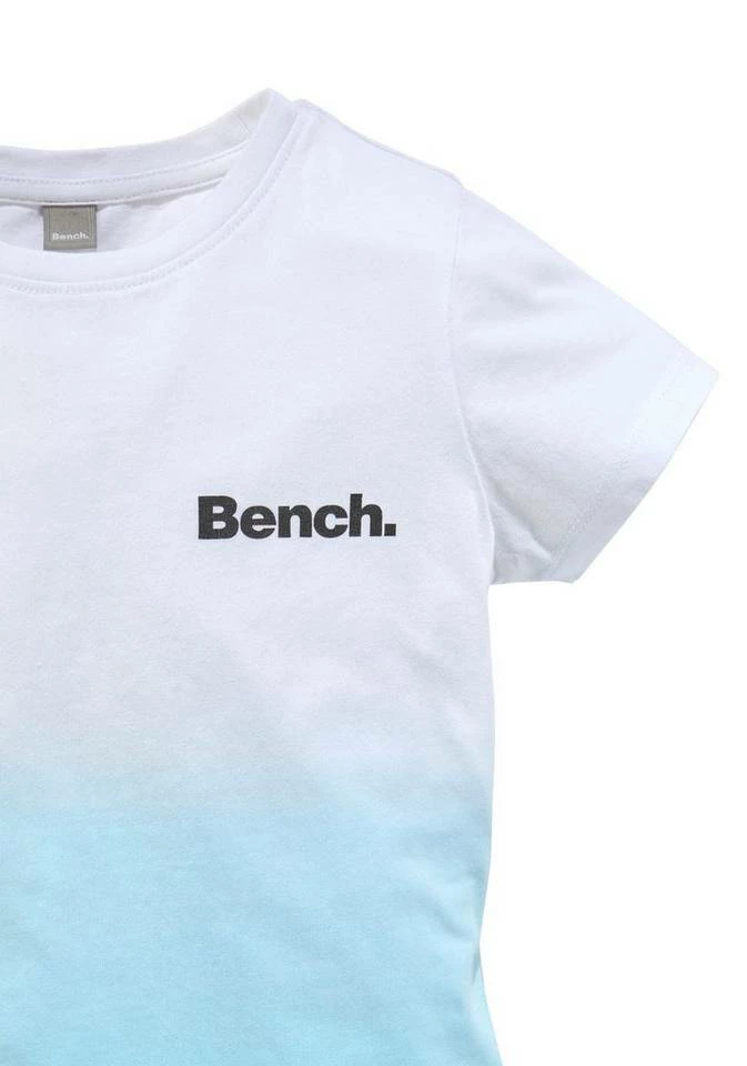 Das T-Shirt von Bench kann gleich mit mehreren schönen Details überzeugen. Zum einen ist da der Print auf der Rückseite, der mit seiner großen Emblemform für einen echten Hingucker sorgt. Zum anderen ist das Shirt im angesagten Dip-Dye-Look gestaltet, das jedes Teil zu einem Unikat macht. Zudem findet sich vorn ein kleiner Markenschriftzug. Zu Shorts, Jeans oder Latzrock ist es der richtige Fashionpartner. Das T-Shirt von Bench zieht die Blicke auf sich!