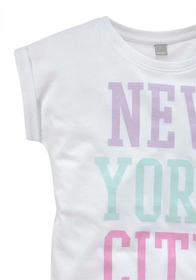 Wer träumt nicht von der Stadt der unbegrenzten Möglichkeiten? Viele Möglichkeiten für tolle Outfits bietet auf jeden Fall das T-Shirt von Bench mit seinem New-York-City-Motiv und dem Markenschriftzug vorn. Neben dem Rundhalsausschnitt ist das lässige Shirt mit extrakurzen Ärmeln und fixierten Aufschlägen versehen. Vom Styling her passt vom Cordrock über Jogpants bis hin zu weiten Jeans zu allem, was gefällt. Macht Styleträume wahr: das T-Shirt von Bench.
