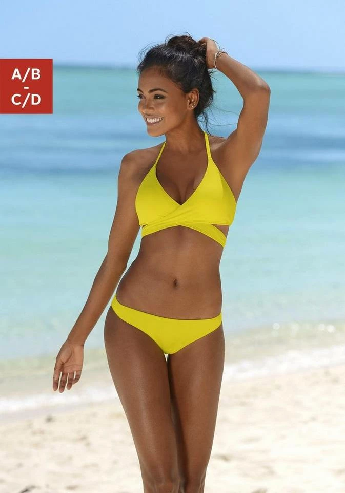 Der Triangelbikini von Bench ist mit seinem trendigen Oberteil in Wickeloptik ein Must-have für den Ausflug ans Meer. Das Design wirkt besonders schön durch den schlichten Brasilschnitt der Hose. Herausnehmbare Cups und die Träger zum Binden garantieren einen guten Halt des Zweiteilers. Der hohe Elasthananteil des Bikinis sorgt für Bewegungsfreiheit und den perfekten Sitz. Ein kleines Metalllabel an der Hose weist auf die Marke hin. Ob solo getragen auf der Sonnenliege oder zu Shorts und Sandalen an der Strandbar, der Triangelbikini von Bench ist immer eine super Wahl. Obermaterial 80% Polyamid, 20% Elasthan (Xtra Life LYCRA®). Futter: 100% Polyester.