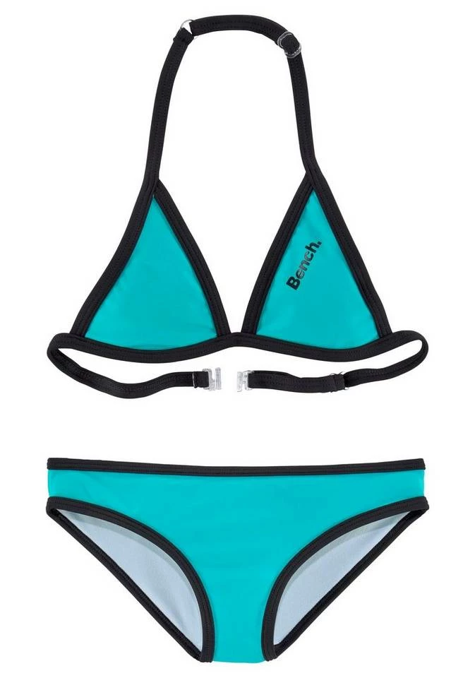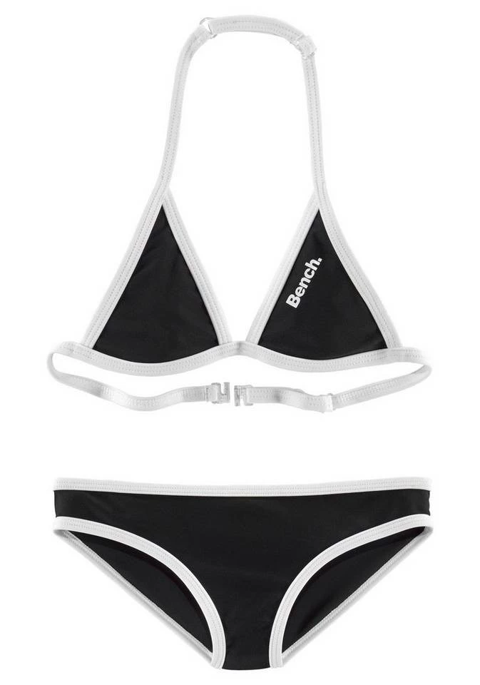 Der sportliche Triangelbikini von Bench glänzt rundum mit kontrastreichen Abschlüssen. Ein feiner Logoprint befindet sich sowohl auf dem Top als auch hinten auf dem Höschen. Das reizende Bikinitop ist im Nacken und am Rücken regulierbar und überzeugt mit schmalen Trägern. Die coole Bikinihose weist ein normal ausgeschnittenes Bein auf. Hübsch dazu: die passenden Boardshorts. Der trendstarke Triangelbikini von Bench verleiht jeder Badenixe den letzten Schliff! Obermaterial: 80% Polyamid, 20% Elasthan (Xtra Life LYCRA®). Futter: 100% Polyester.