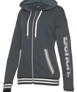 Bench. Kapuzensweatjacke mit gestreiften Bündchen und Glanzprint Grau-meliert, Apricot, Mint